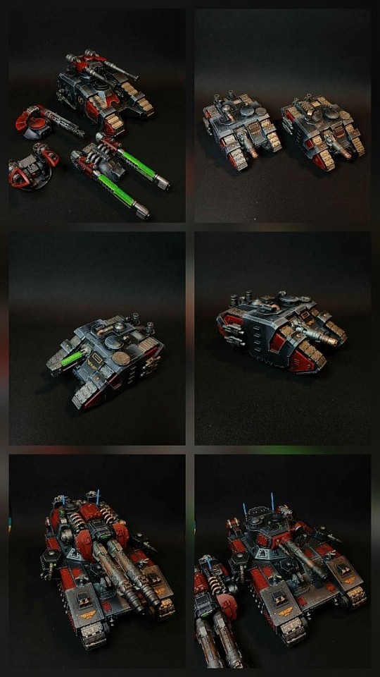 Chaque pièce a été travaillée avec soin, en jouant sur les dégradés manuels pour obtenir des effets de profondeur et de lumière sans l’aide d’aérographe. Les touches de rouge profond, de métal usé et les éclats lumineux verts apportent un contraste saisissant, donnant à ces machines de guerre un aspect à la fois réaliste et imposant.