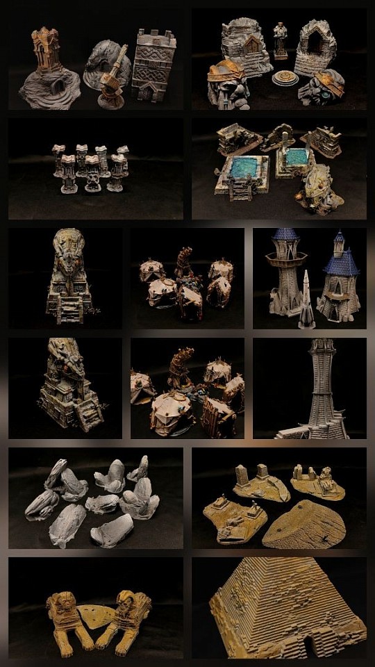 L’idée était de proposer une variété de thèmes et d’ambiances, permettant de créer des tables riches, immersives et modulables selon les scénarios. Ruines anciennes, architectures oubliées, éléments mystiques, structures imposantes ou encore décors naturels : chaque élément trouve sa place dans différents univers de jeu.