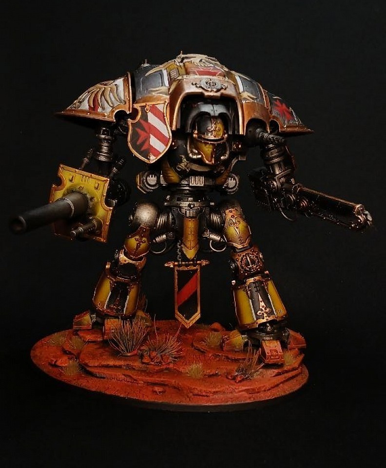 Monté sur un socle texturé rouge aux allures martiennes, cet Imperial Knight s’impose autant par sa présence que par son niveau de finition. Chaque élément a été pensé pour raconter une histoire, pour transmettre une atmosphère fidèle à l’univers de Warhammer 40K.