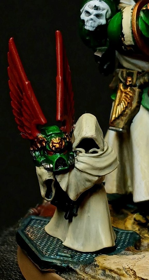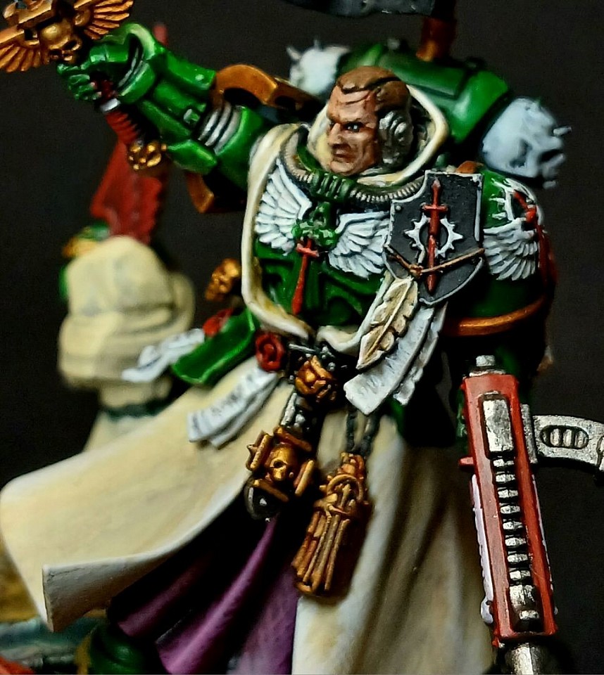 Cette version peinte à la main par L’Atelier de Jonjon a été réalisée au niveau Gold, entièrement au pinceau, avec un soin particulier sur les transitions et les lumières. Les drapés ivoire contrastent avec l’armure verte emblématique du Chapitre, tandis que les liserés rouges et dorés rappellent son rang et son prestige.