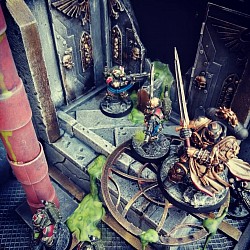 Les socles texturés et parsemés de touffes d’herbe sèche, viennent ancrer cette armée dans un décor rude et hostile, à l’image des mondes féodaux dont elle est originaire. Cette série continue de poser les bases d’une force aussi stylisée qu'efficace, parfaitement intégrée dans l’univers brutal de Warhammer 40K.